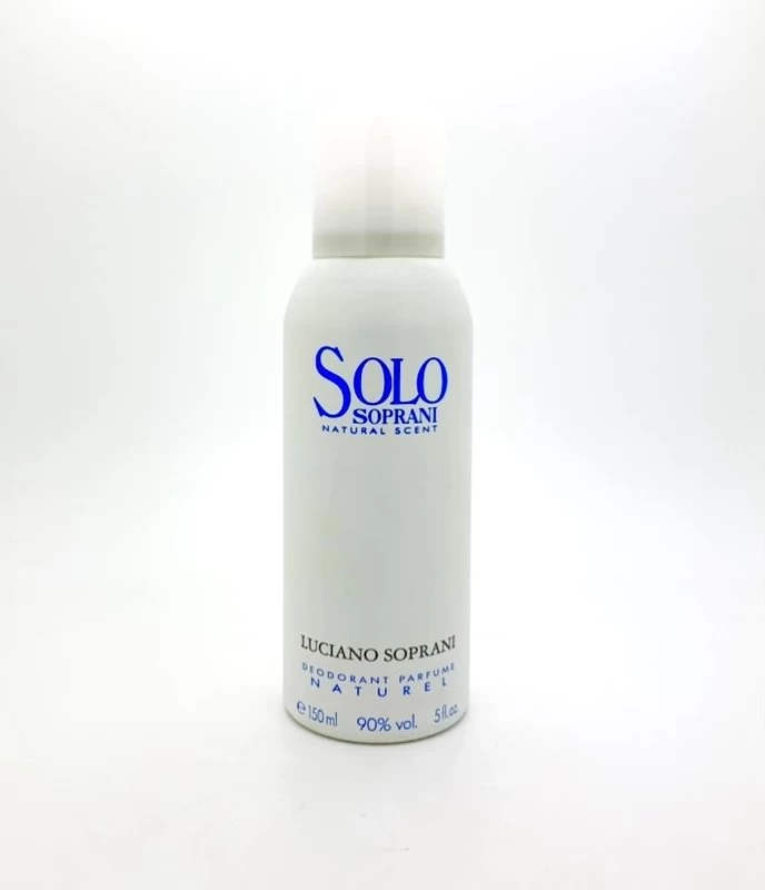 Solo Soprani de Luciano Soprani est un déodorant floral vert pour femmes et hommes. Solo Soprani a été lancé en 1995 et a gagné en notoriété, notamment en Italie, au Japon et en Europe. Les notes de tête sont l’orange, la bergamote, le citron et la violette ; les notes de cœur sont la lavande, la cardamome, la noix de muscade, le jasmin et la rose ; les notes de fond sont le cèdre, l’ambre, la mousse de chêne, le musc et la fève tonka.